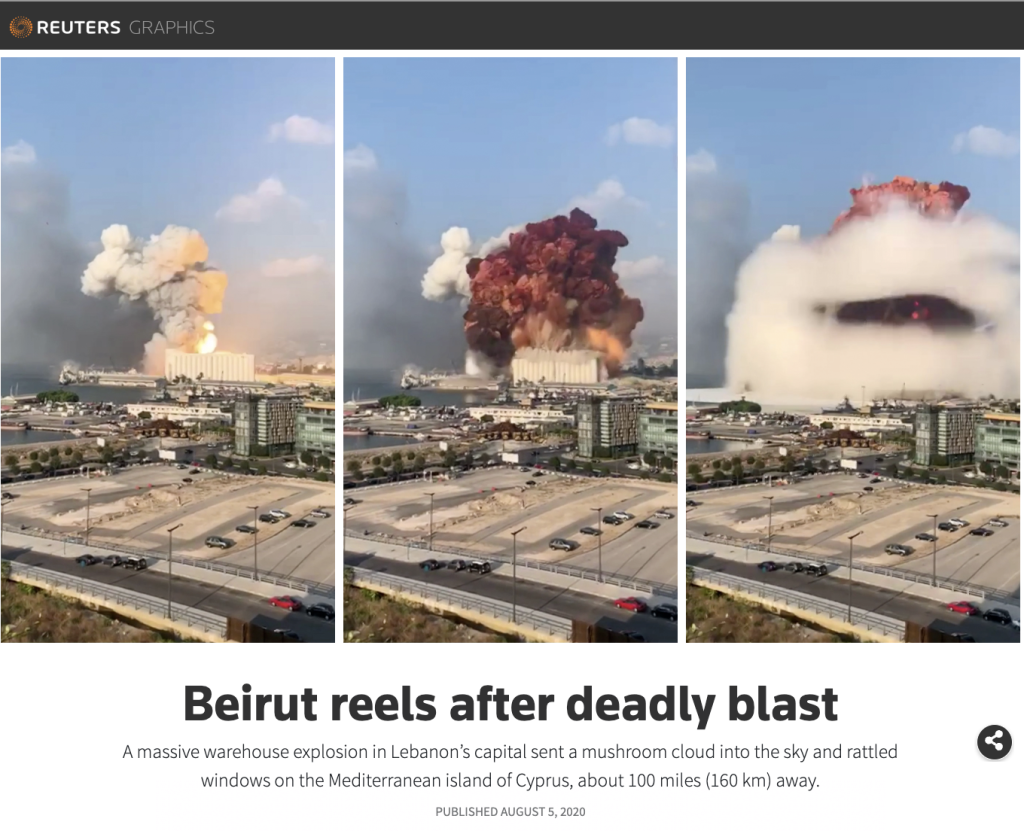 The blast was also reported by CNN in 2020. The above website states that the incident took place in the port area of Beirut, Lebanon, where an explosion of chemical ammonium nitrate was stored in a warehouse in this port area for six years before it exploded.