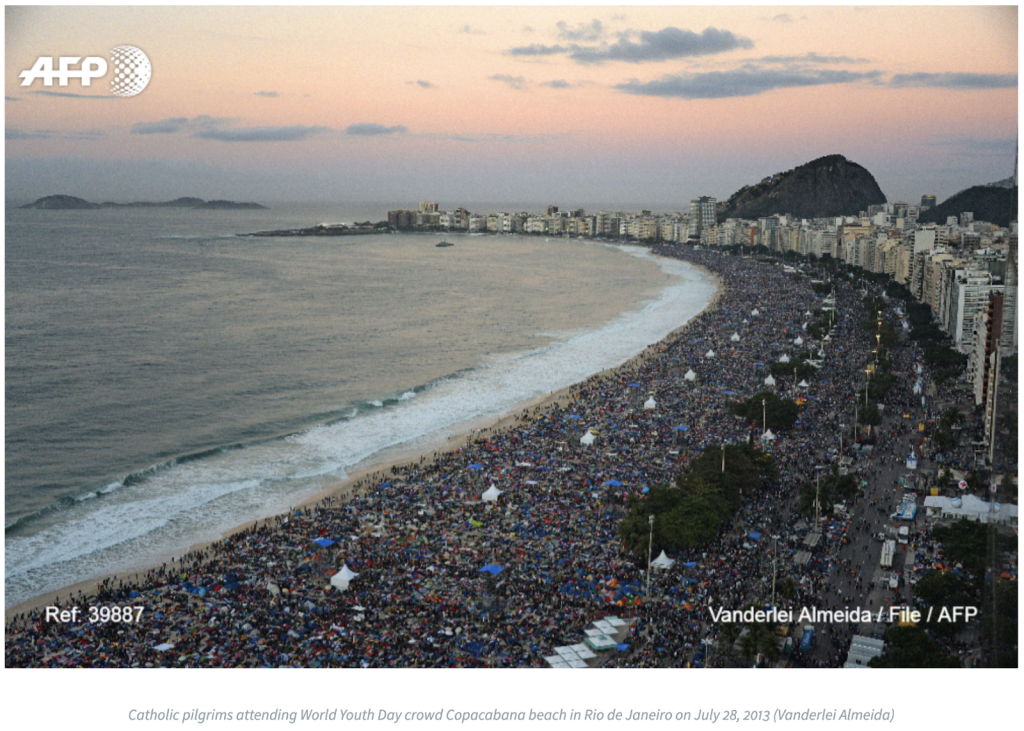 Photos showing crowds along the upper coast were taken in 2013 during World Youth Day, where many young Catholics gathered. In one such event, nearly 3 million people flocked to Copacabana Beach to attend, with many sleeping on the beach the night before Pope Francis’ arrival in Brazil.