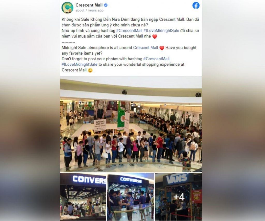 An exact photo showing the crowd was found and posted on the “Crescent Mall” Facebook page seven years ago. The same Facebook page confirms that people lined up occured at the Crescent Mall during a night sale or aka “Midnight Sale”.