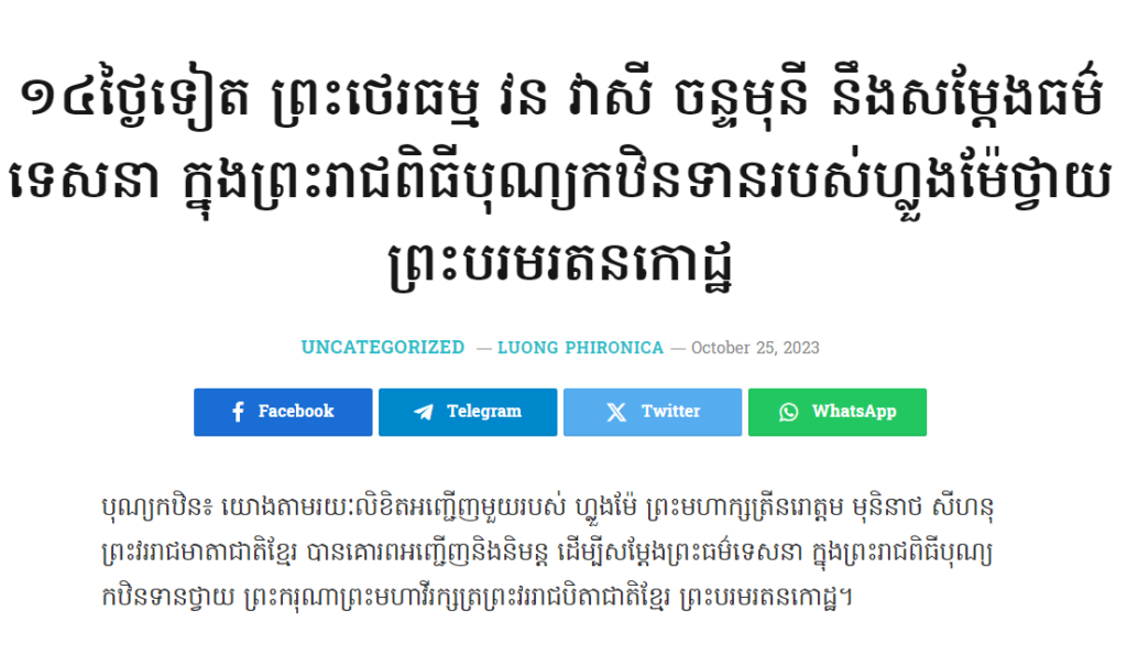 Fact Crescendo Cambodia began debunking the claim mentioned above by reaching out to Cambodia’s Royal Palace and checking local media outlets. Then, we found the facts below.