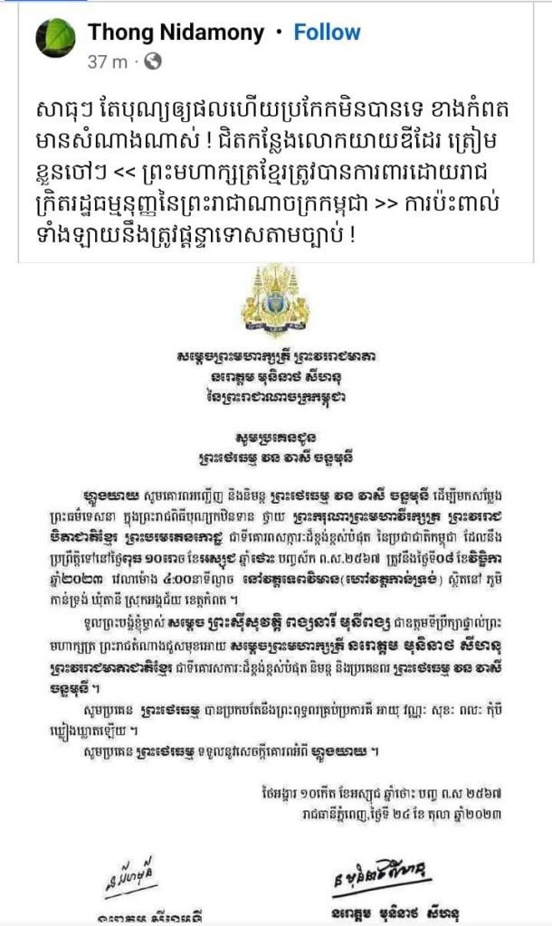 Then, the Royal Palace released a clarification letter, saying the letter mentioned above is “fake”, according to a report by TVK – the sate television.