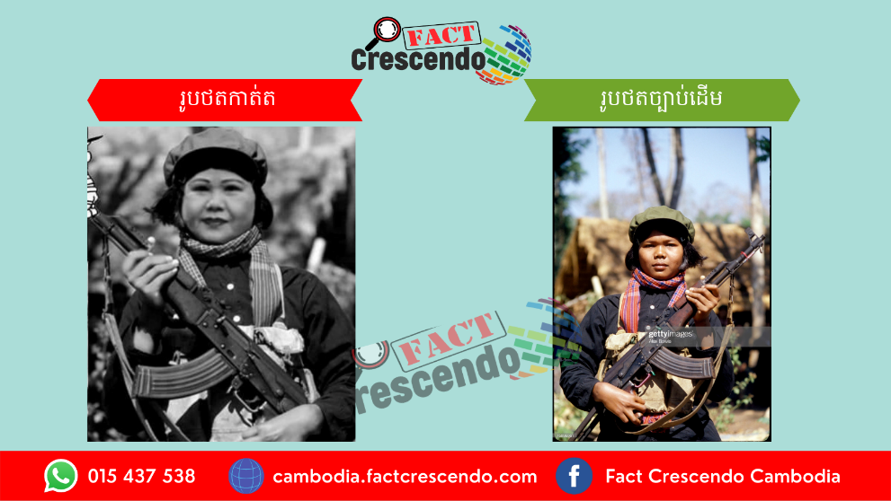 The other original piece of the claimed photo was found in Getty Images saying a girl called “Mitr Neary” – female comrade by the Khmer Rouge regime – holding an AK-49 rifle. The photo caption shows it was taken in the western jungle of Cambodia by Alex Bowie on February 15, 1981.
