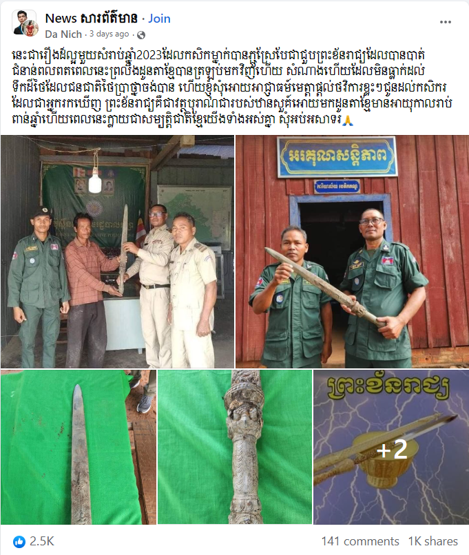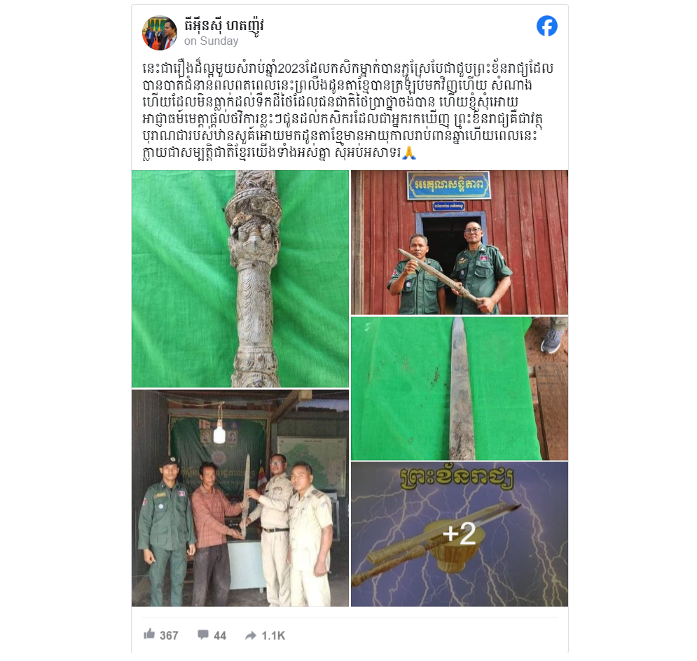 The claim got a lot of shares, comments, and reactions from Khmer-speaking social media users, many of them believed the sword was an ancient royal sword lost for many years.