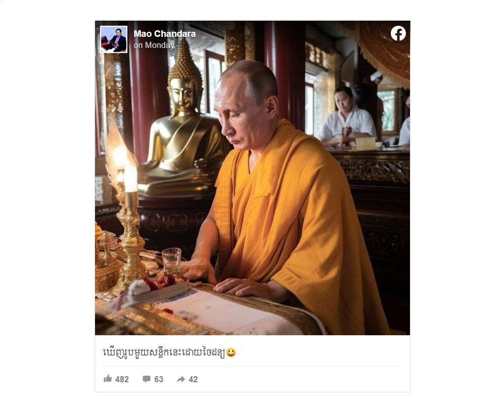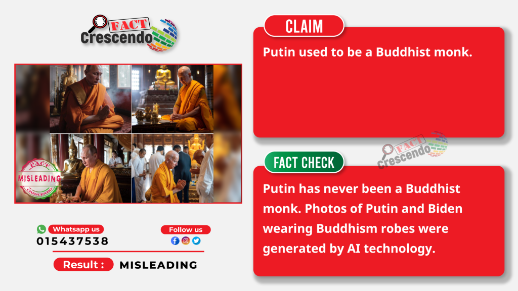 Fact Crescendo Cambodia found out the claim mentioned above is misleading. Russian President Vladimir Putin has never been a Buddhist monk. Photos of Putin and U.S. President Joe Biden wearing Buddhism robes were generated by AI technology. They are among AI-generated photos going viral on social media in recent weeks.