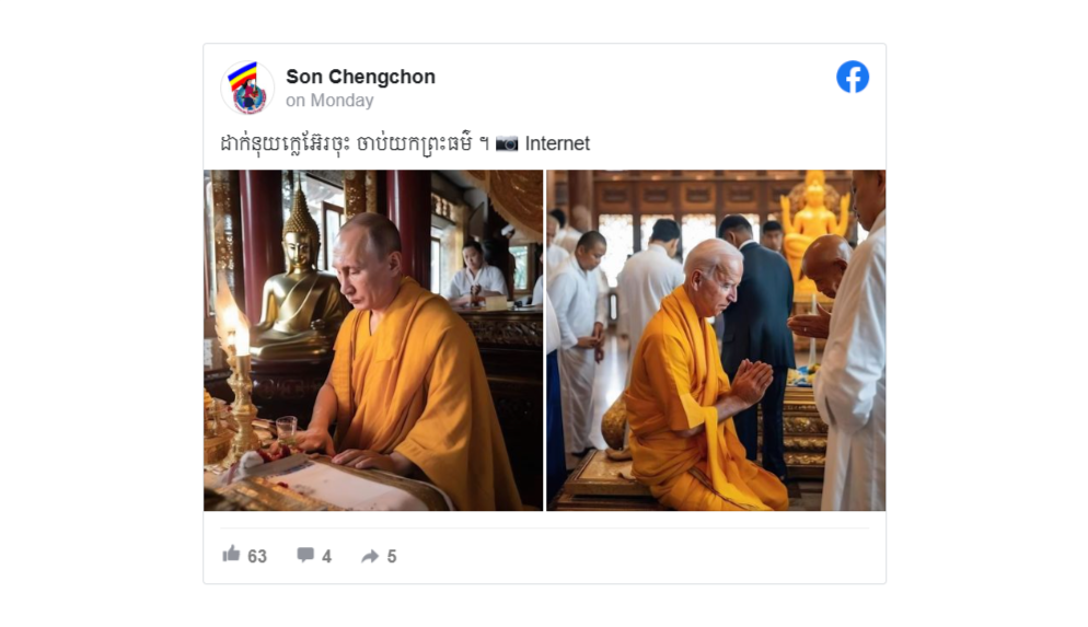 Few days earlier, another Facebook user also uploaded photos of Putin and the U.S. President Joe Biden wearing Buddhism robes. The photos came with the caption “give up nuclear, turn to Dharma – Buddha teaching.”