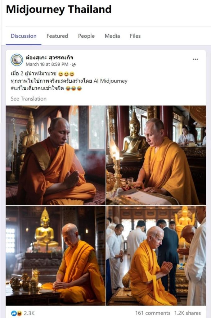 However, we found out the detail of these photos shared on social media. Then, we found out these photos were generated by AI Midjourney.