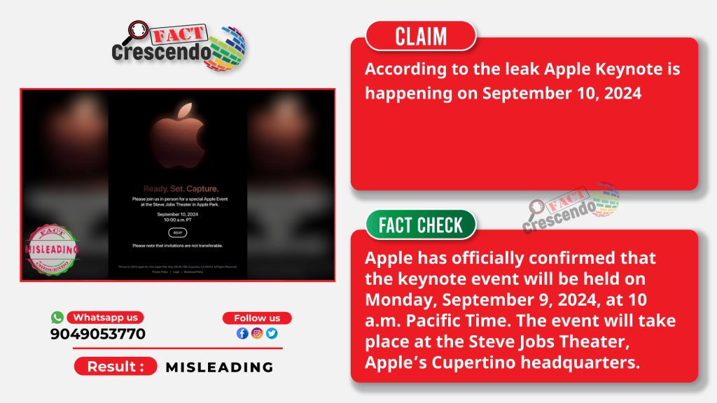 After a long wait for the iPhone 16, various rumors and fake news have circulated on social media. Recently, an invitation poster suggested that Apple will launch the iPhone 16 on September 10, 2024. However, Fact Crescendo have confirmed that this claim and the poster are misleading and not officially released by Apple.