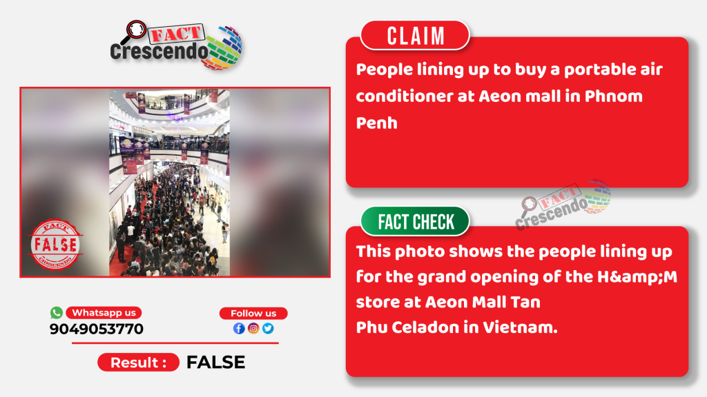 Fact Crescendo Cambodia found that the claim attached to the above photos is false. These photos show the people lining up for the grand opening of the H&M store at Aeon Mall Tan Phu Celadon in Vietnam.