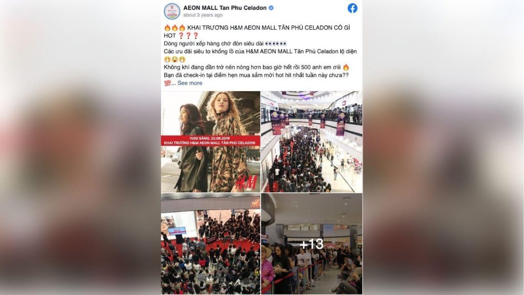 An exact photo showing the crowd was found and posted on Aeon Mall Tan Phu’s official Facebook page, published on August 22, 2019. This post has confirmed that this is a view of people queuing up during the official launch of one of H&M’s clothing stores in Vietnam.
