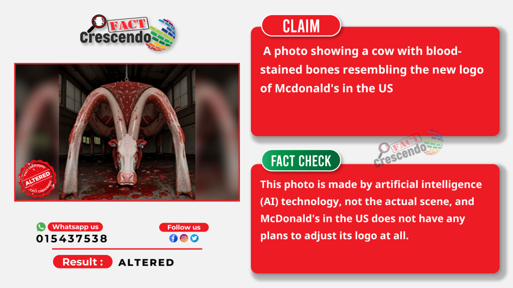 On December 13, 2023, a Facebook user posted a photo showing a cow with blood-stained bones resembling the new logo of McDonald’s in the US. Such statements have been circulated several times, with mixed reactions and expressions from Facebook users.