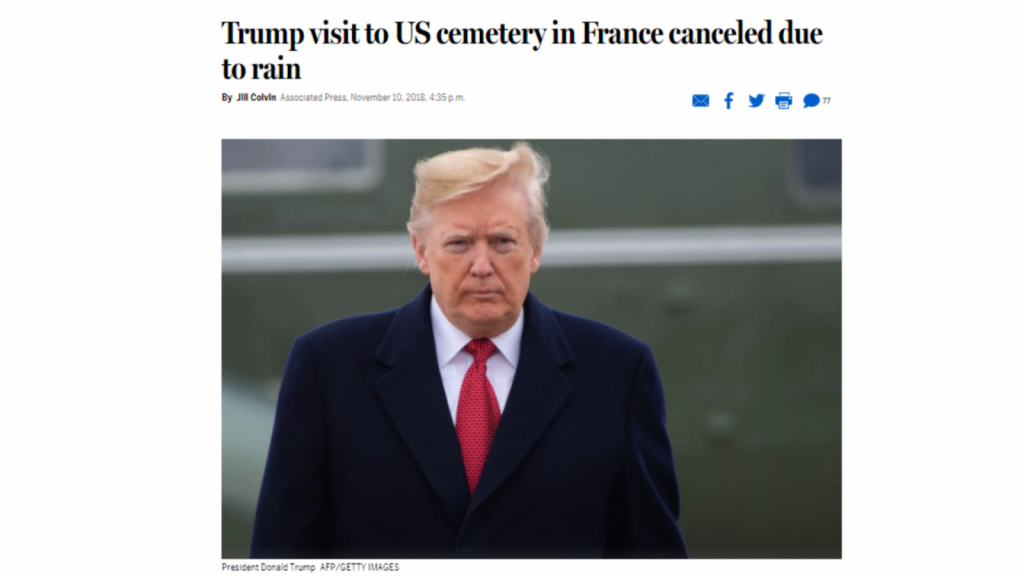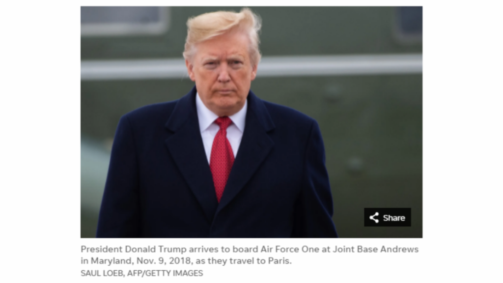 The screenshot below was taken from a news media website titled in English as “Trump visits Paris to commemorate centennial of end of World War I”.