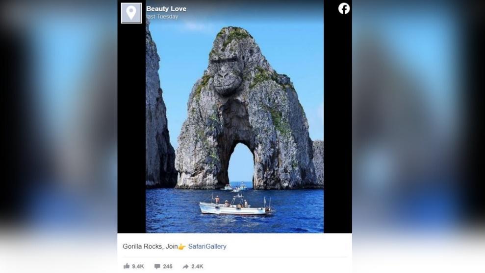 Fact Crescendo Cambodia found that the photo shared by the above Facebook page was false. It was altered before posting on social media platforms. This photo is known as Faraglioni rock, and it is on Capri Island, Italy. This rock does not appear to be an exact form of Gorilla like posted above at all.