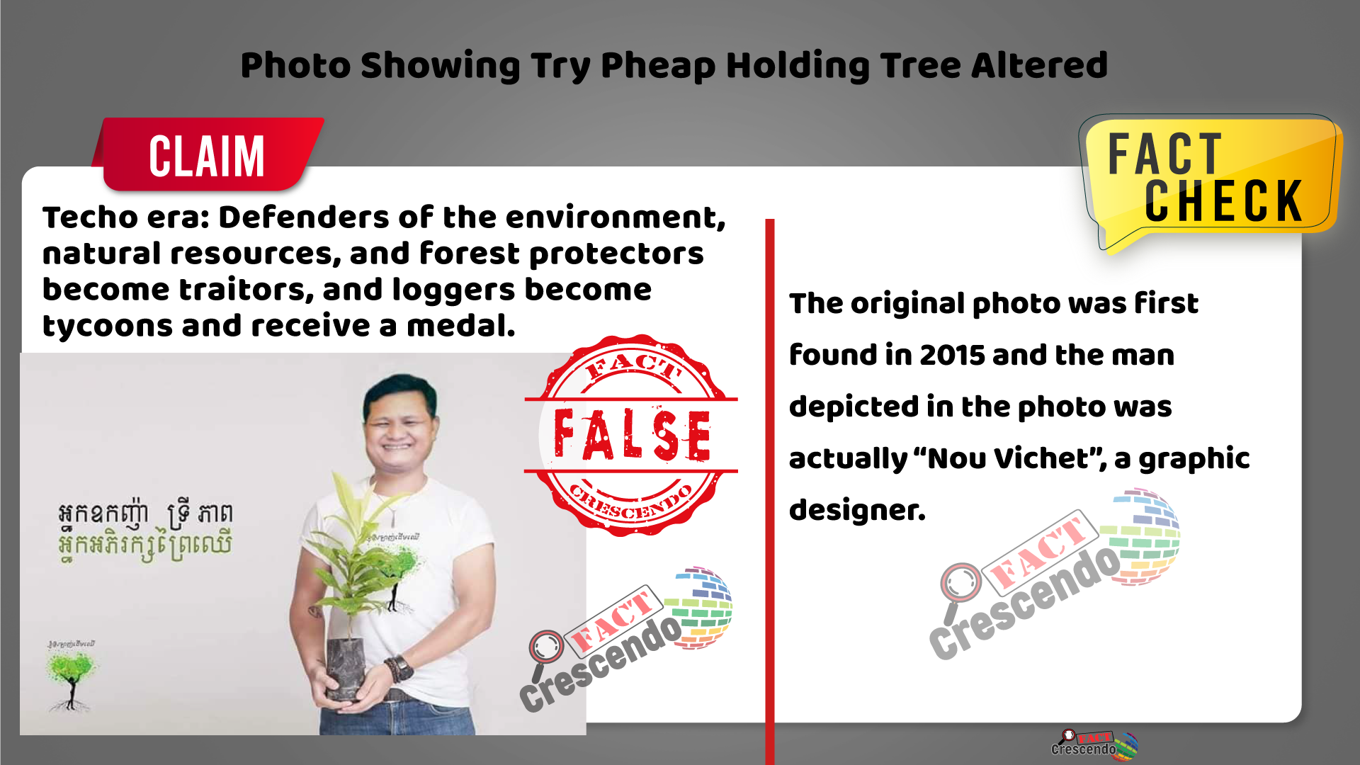 Fact Crescendo Cambodia បានរកឃើញថា រូបថតដែលអ្នកប្រើប្រាស់បណ្ដាញសង្គមកម្ពុជាអះអាងថាជាទិដ្ឋភាព ទីក្រុងព្រែកឬស្សី នៅក្នុងប្រទេសវៀតណាមនោះ គឺធ្វើឲ្យមានការយល់ច្រឡំ និងមិនមែនជាការពិតនោះទេ។ ការពិត រូបភាពមួយសន្លឹកនេះ ត្រូវបានរកឃើញ និងថតឡើងចេញពីទីក្រុងបាងកក ប្រទេសថៃ។