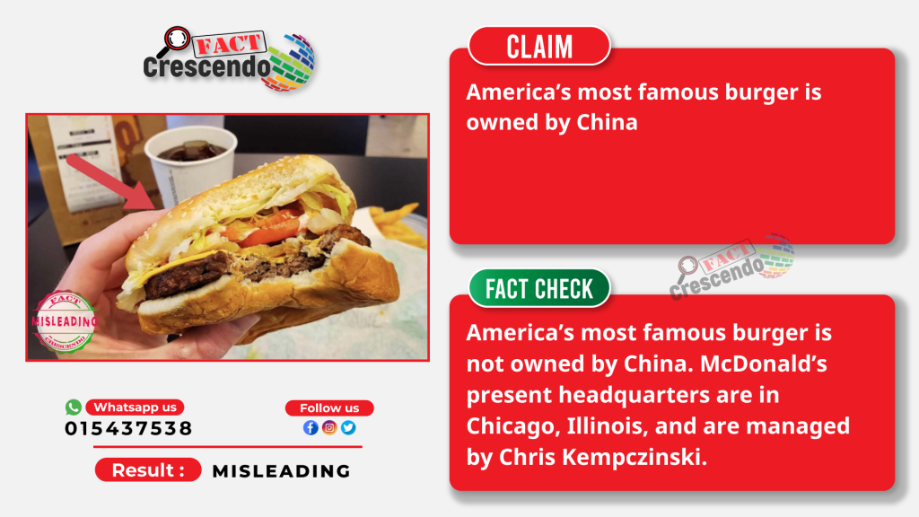 Fact Crescendo has found that the articles attached to the above claim are misleading. China does not own America’s most famous burger. McDonald’s present headquarters are in Chicago, Illinois, and are managed by Chris Kempczinski.