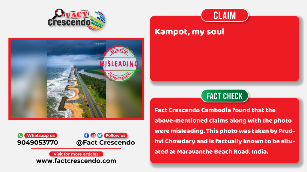 Fact Crescendo Cambodia found that the above-mentioned claims along with the photo were misleading. This photo was taken by Prudhvi Chowdary and is factually known to be situated at Maravanthe Beach Road, India.
