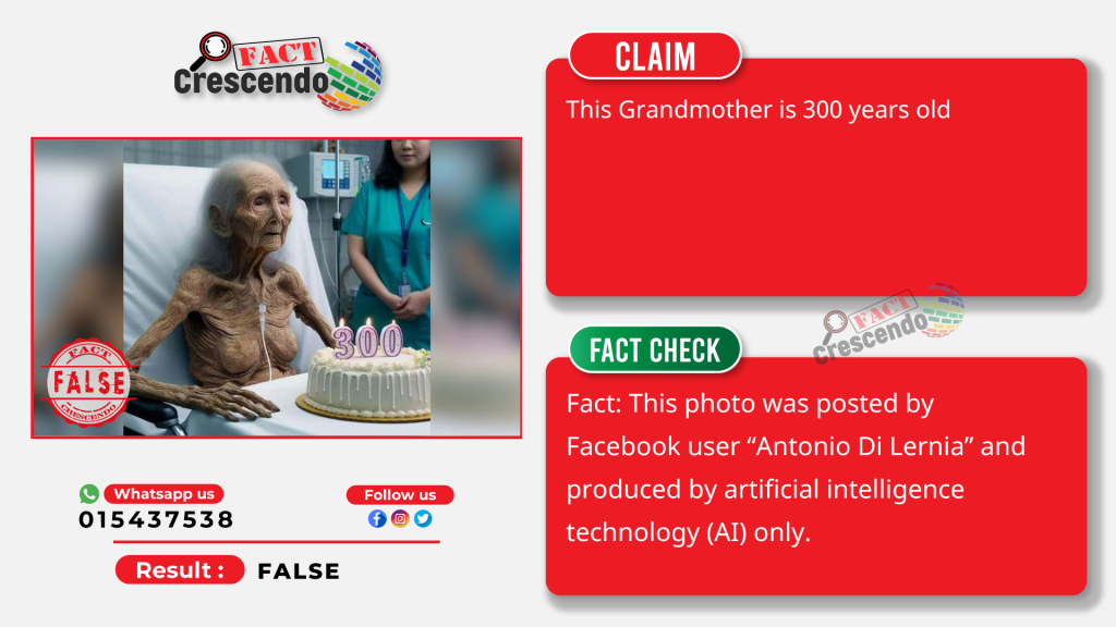 Even though a lot of people have lived longer than 100 years on Earth, a picture of an elderly woman celebrating her 300th birthday has gone viral on social media. Users have shared and commented on the aforementioned post numerous times. The fact-finding team at Fact Crescendo Cambodia found, however, that what was claimed about the photos being shared on social media is false.