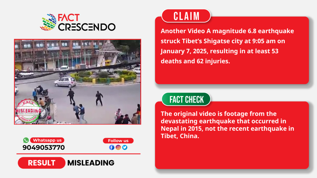 Fact Crescendo found that the claim described above is false. The original video is footage from the devastating earthquake that occurred in Nepal in 2015, not the recent earthquake in Tibet.