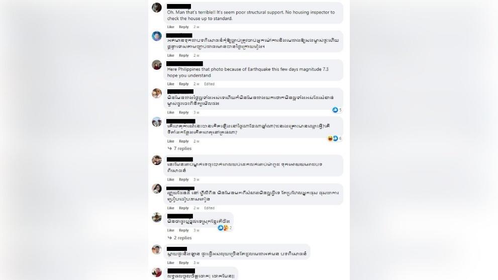 On July 29, 2022, one of the Facebook users posted three photos on Facebook, which shows a fragment of a house demolition. This photo was attached to a caption mentioning “as an experience for the landlord and the contractor, the house owners want the cheapest”. The caption attached to the photo above has been shared several times by social media users, along with mixed expressions and reactions. Also, some social media users have questioned the details of the incident whether it really happened in Cambodia.