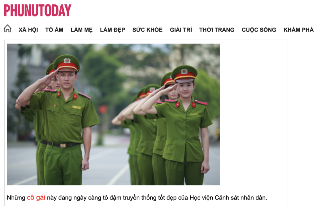The same photo with the same shape was also found on the Vietnamese website PHUNUTODAY. It is also stated that this is a student scene at the Vietnam People’s Police Academy.