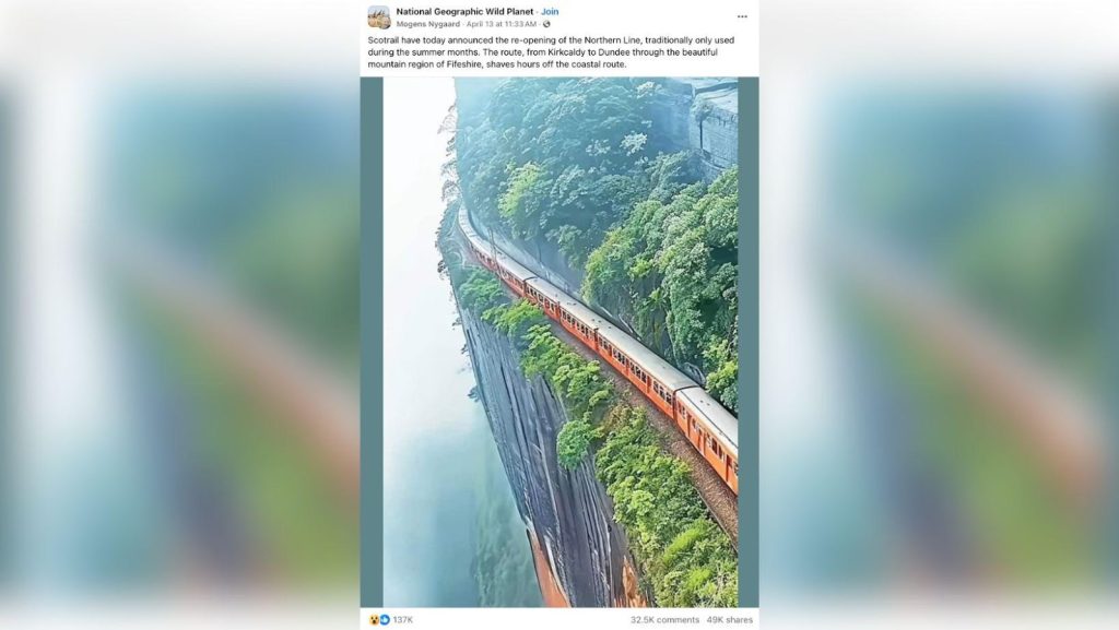 Recently, there was a viral image showing a train running next to a cliff that was posted and shared on social media. The above image has been attached to a claim that it was situated in Scotland and that it was the re-opening of the Northern Line.