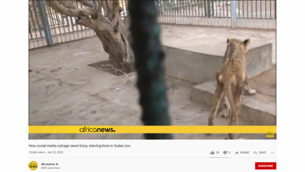 The above case of the lion was also published and posted on Youtube on January 23. 2020 by the international newspaper AfricaNews. More pictures from the website that was written in English as “How social media outrage saved bony, starving lions in Sudan zoo”.